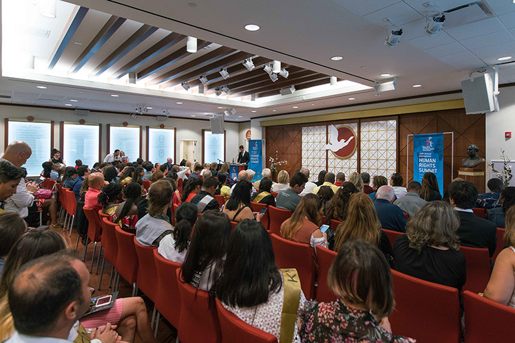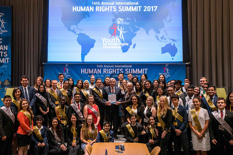 A group of 66 young human rights activists representing 42 nations traveled to the United Nations Aug. 24 to attend the 14th annual Human Rights Summit, organized by Youth for Human Rights International. The program brought together these young men and women with human rights activists of all ages, beliefs and backgrounds to review and work out strategies to tackle the most pressing human rights issues that confront the world today, from human trafficking to child sacrifice, poverty to the refugee crisis, and the urgent need to protect and ensure the right to education, freedom of expression and belief.