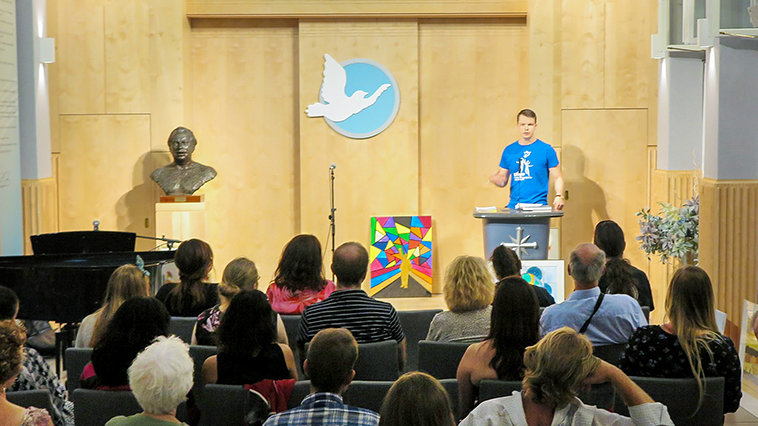 This was followed by an Art Night at the Church of Scientology Copenhagen, where the message was uplifting resilience through art. The recitation of the Invictus poem communicated that resilient spirit for the audience as no other poem can. The poem, written by William Ernest Henley, was famously recited by Mandela to himself and fellow inmates while at Robben Island. Its closing lines state, “I am the master of my fate, I am the captain of my soul.” Next was an introduction to the YHRI campaign followed by a presentation of the mosaic painting of Mandela and performances by artists of all types including musicians performing their own songs, a photographer and a guitar player.
