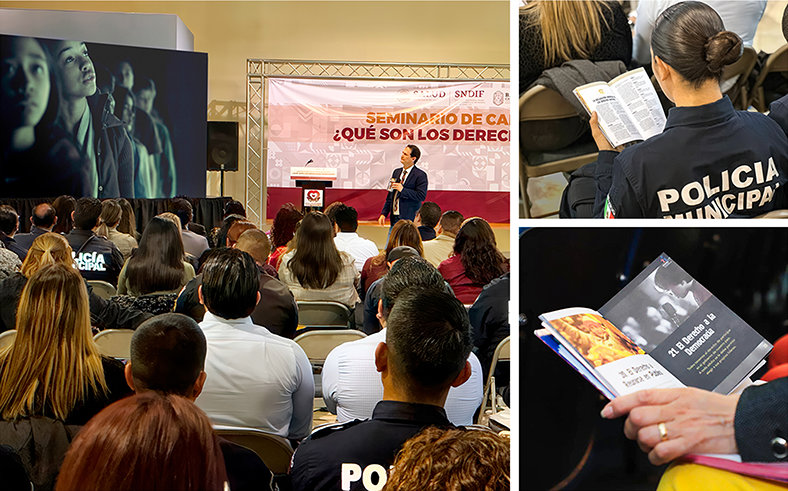 Human Rights training delivered to police officers and staff of the National System for Integral Family Development in Mexico.